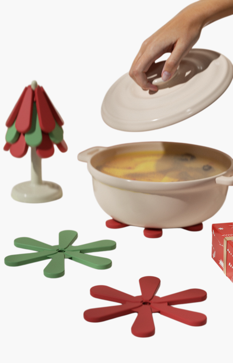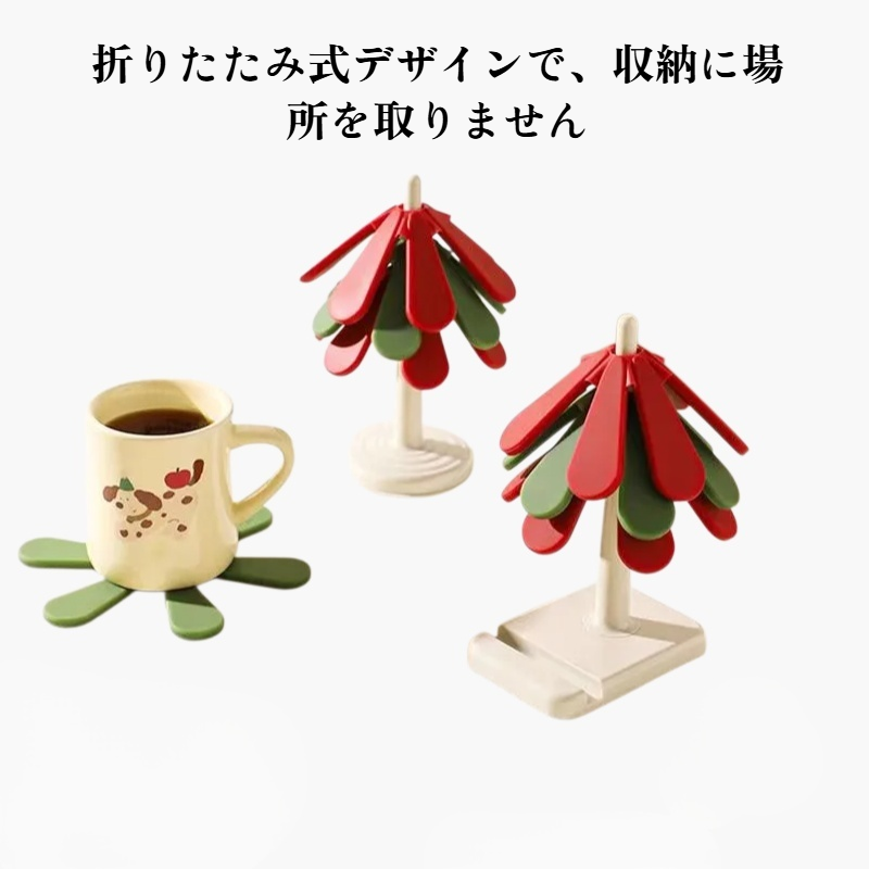 保温・防熱機能付きでテーブルを傷めず使用可能。折りたたみ式で収納便利、滑り止め加工で安定感抜群。